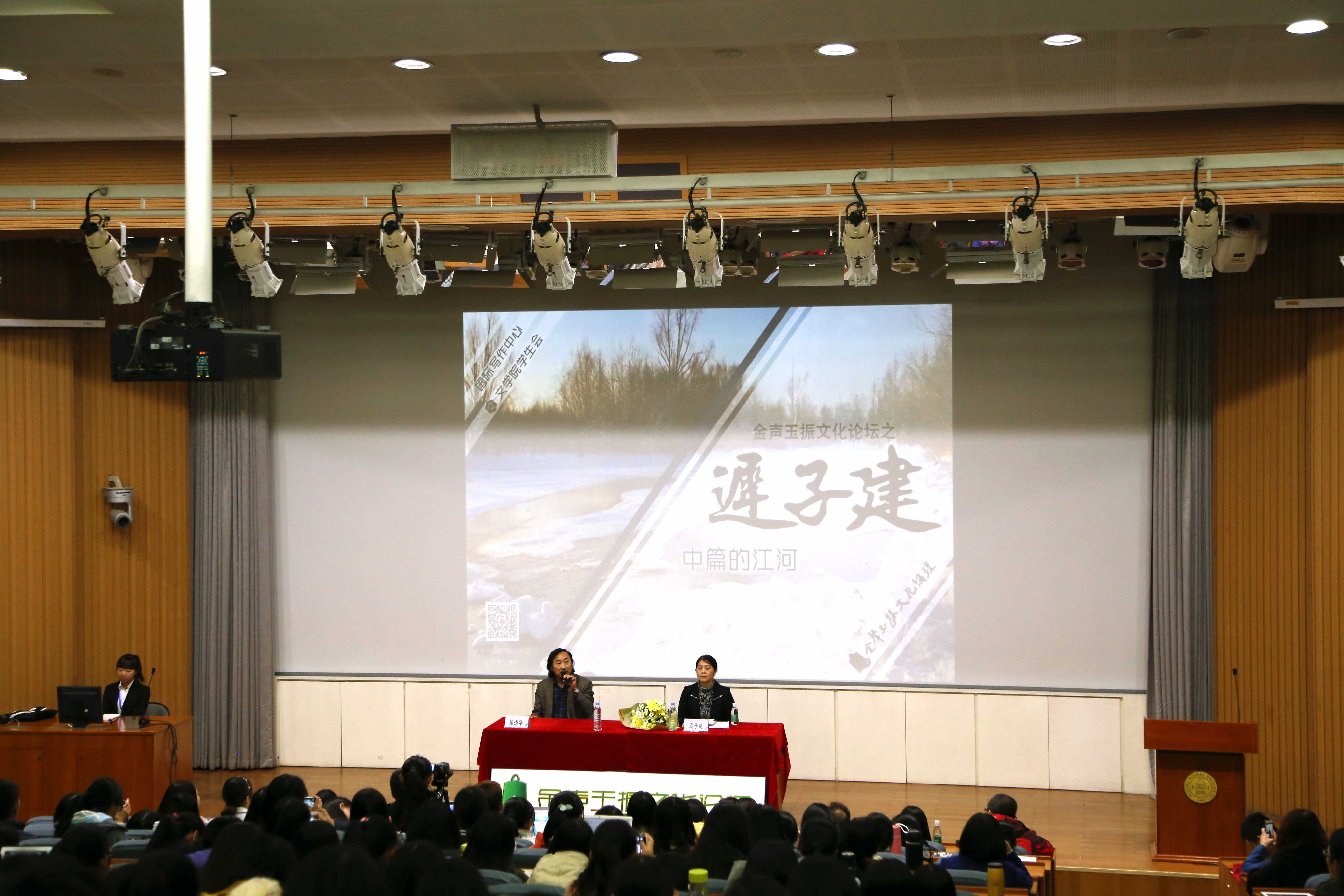 2015年10月22日晚八时,由betway·必威西汉姆联国际写作中心、必威betway西汉姆学生会共同主办的金声玉振文化论坛之“中篇的江河——迟子建专题讲座”在敬文讲堂隆重举行。曾获“鲁迅文学奖”、“茅盾文学奖”等国内重大文学奖项的迟子建女士作为我校驻校作家担任本场讲座主讲,著名文学评论家、betway·必威西汉姆联国际写作中心执行主任张清华教授任特邀主持。