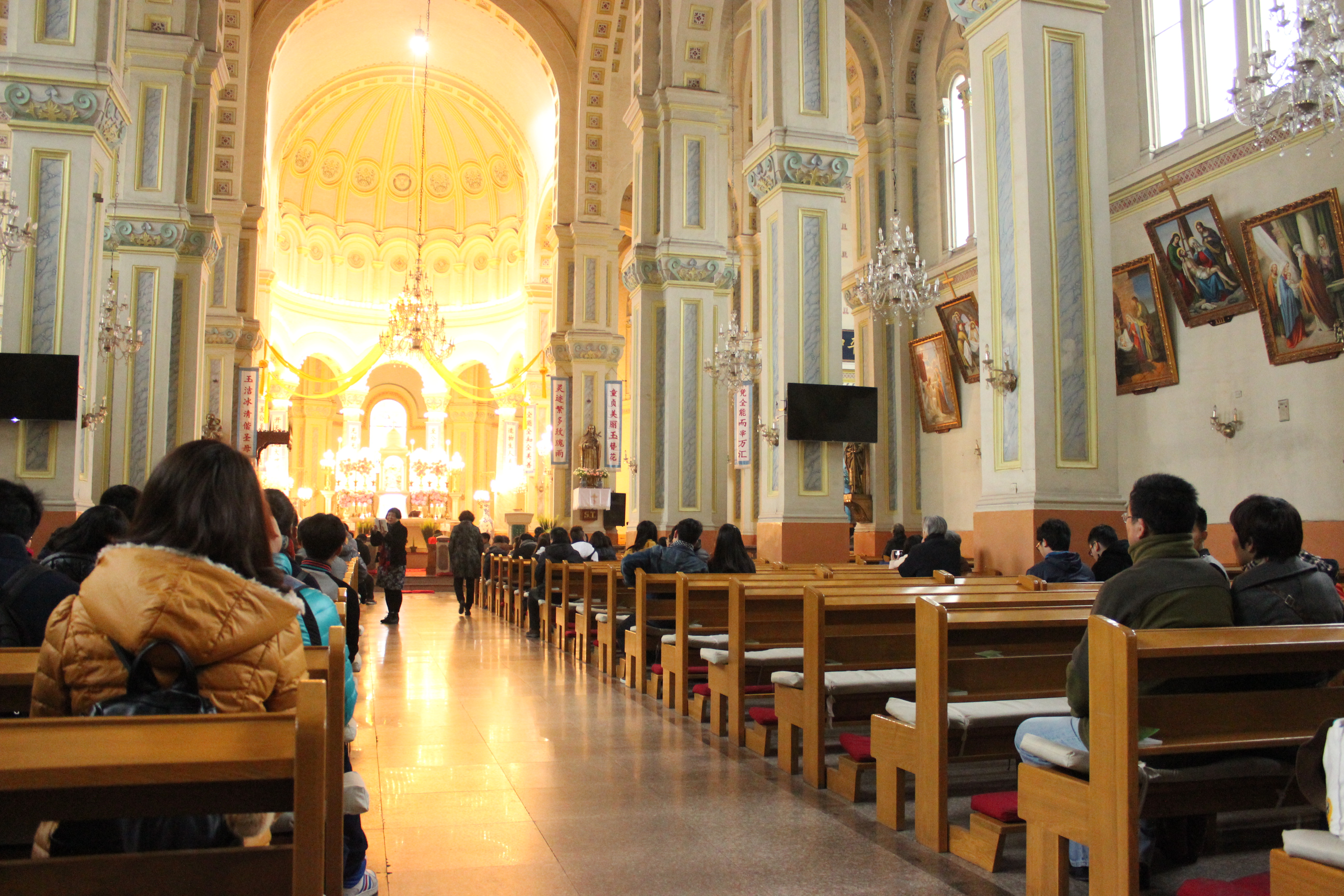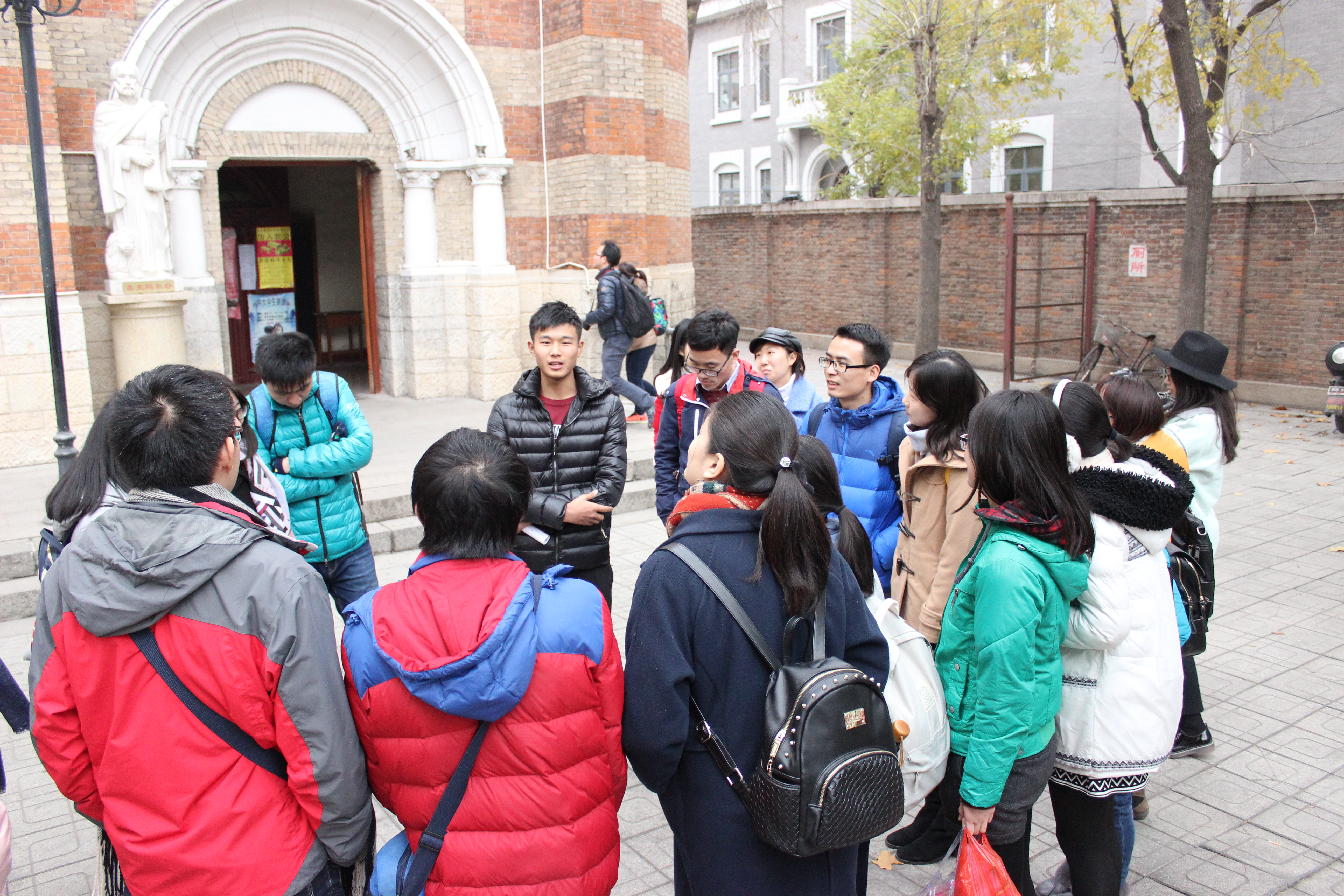 20日下午,我们来到了西开教堂。站在高大宏伟的教堂门口,必威betway西汉姆学生会的同学向我们讲解介绍西开教堂。西开教堂建筑风格属于罗曼式,主体是用红黄色花砖砌造的,教堂内有许多壁画和大管风琴,前面院中有圣水坛,有左右两道大门,信徒分男女从不同的门入内。西开教堂的结构是带厢堂长殿式,教堂横殿和长方形教堂相交构成十字连拱廊。室内八角形的穹窿顶及侧窗均以彩色玻璃嵌作画。内墙彩绘壁画,装饰华丽,充满宗教神秘气息。