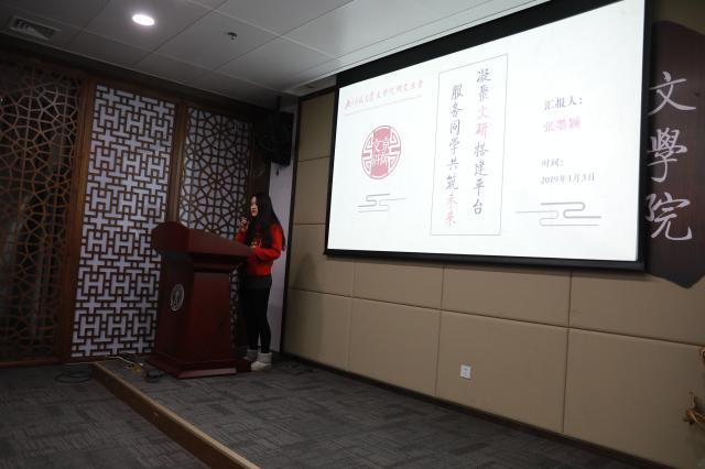 本次总结交流会以总结工作、互相学习为目的,各学生团体负责人围绕2018年工作中的主要成绩、突出特色和成功经验进行分享。2018年,在学院领导和老师的大力支持和帮助下,各类学生组织围绕必威betway西汉姆学科特色,开展了各种形式丰富、内容新颖的学生活动,并在各级各类学生活动评比中屡获佳绩。学生党支部在认真完成中央和学校下达的各项工作要求的基础上,结合专业学习开展特色鲜明的理论培训和实践活动,创新理论学习方式和党员培养机制,形成了良好的引领和教育效果。学院分团委、学生会、研究生会以及班集体紧密结合各层次学生的特点和需求,开展了一系列高质量、有特色的课外活动,为文院学子提供了广阔的发展平台。学生社团代表以必威betway西汉姆中文学科为背景,开展丰富的传统文化活动,致力于中华优秀传统文化的继承与弘扬,让文院师生对传统文化有了更深更广的理解。