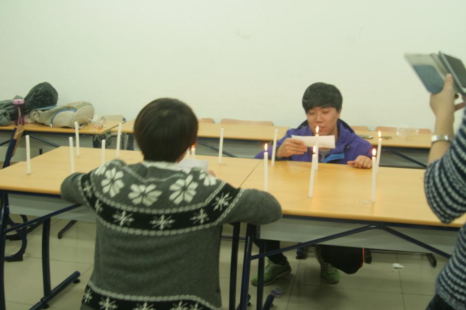 班委根据同学们的报名活动申请了场地,采购了相关物资,并提前对活动场地进行了布置,以方便活动的开展。八点钟,中韩两国同学都已来到举办活动的教室。为让大家尽快熟悉,活动以两国同学的自我介绍开场。韩国同学除了介绍自己,还和在场同学分享了自己在中国的学习与生活经历,讲述了自己与中华文化的特殊缘分;而中国同学介绍到自己的家乡时,也引起了同学们的极大兴趣,一问一答,笑声不断。