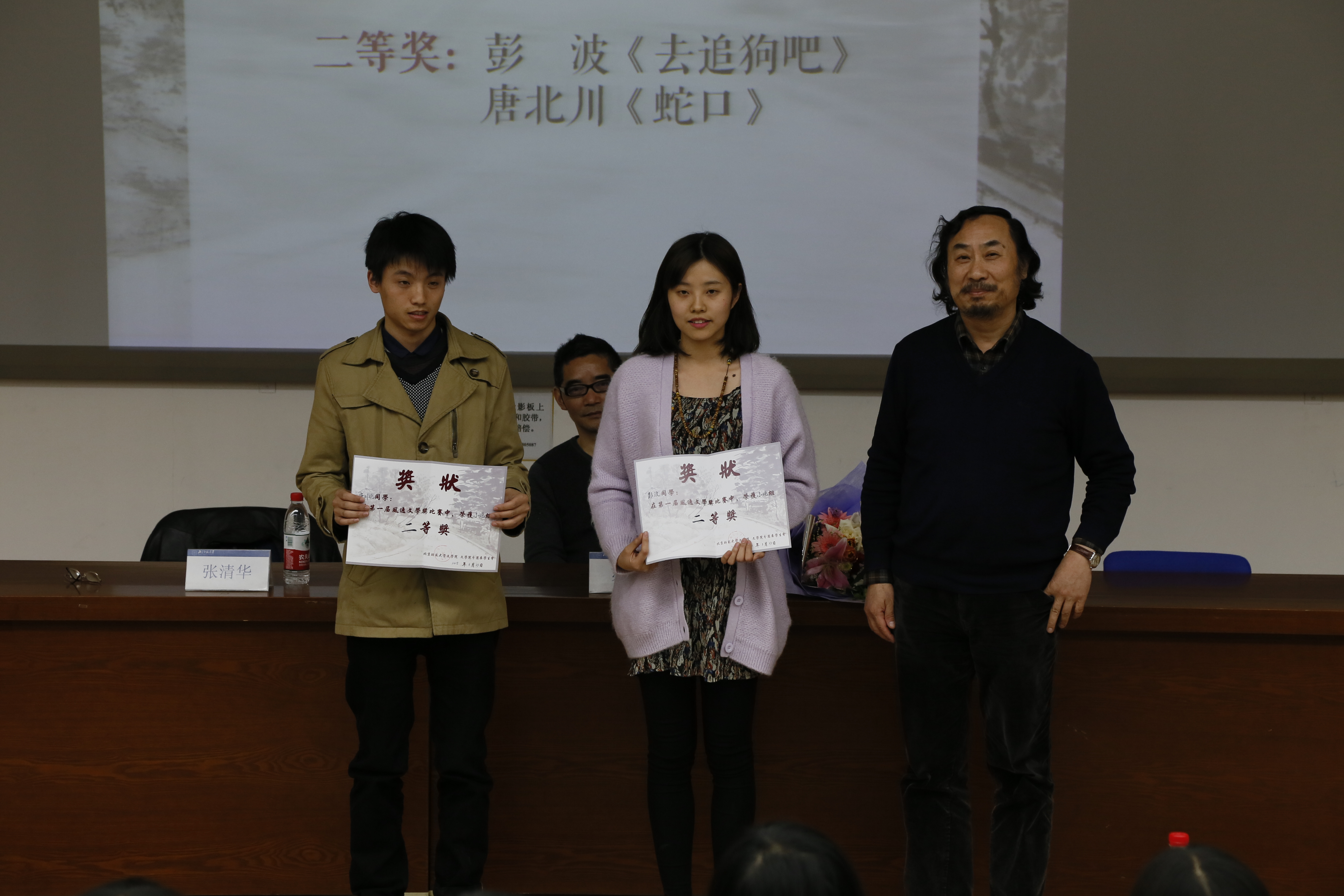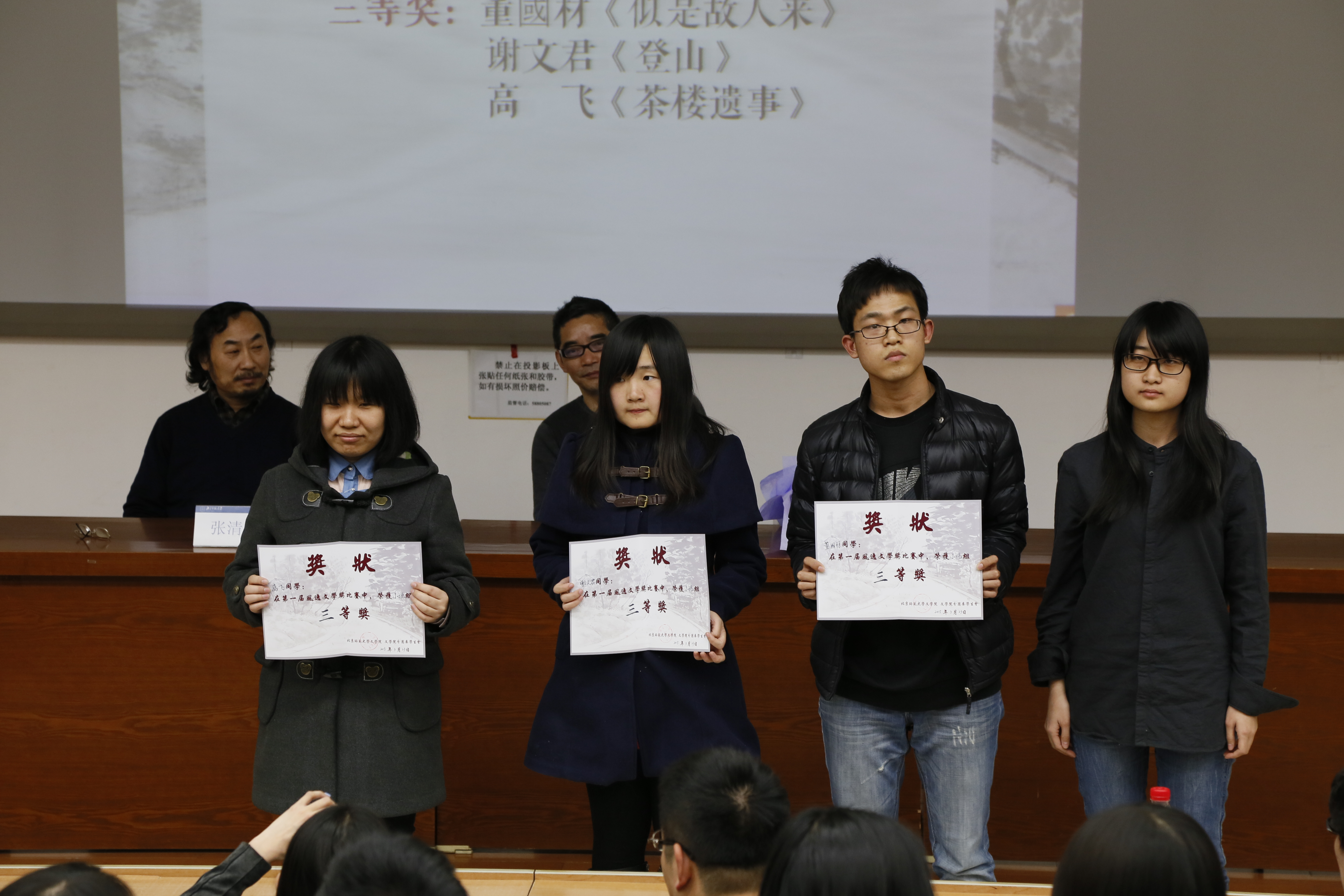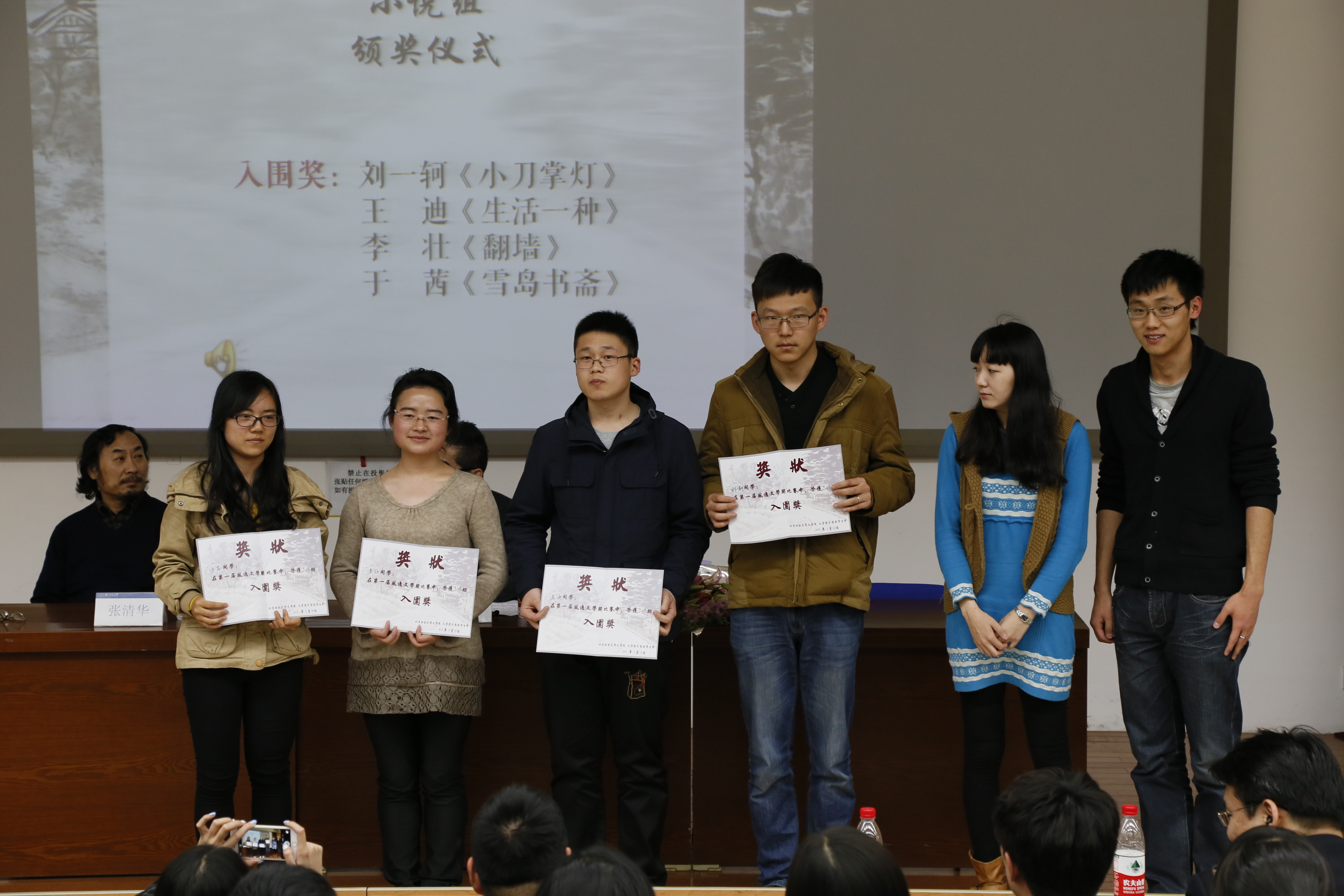 中国当代著名作家、北师大驻校作家苏童为获得一等奖的参赛选手颁奖。