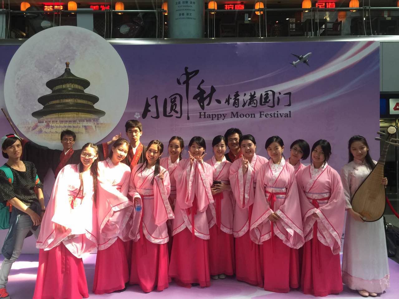 2015年9月27日,betway·必威西汉姆联南山诗社受邀参加北京首都国际机场“月圆中秋,情满国门”的活动。首都国际机场是中国的“国门”,也是中国对外文化展示的重要窗口。南山诗社是全国首个受邀参与机场演出的大学生社团,为此项活动进行了精心的筹备。