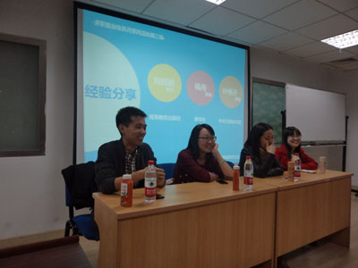 现供职于高等教育出版社的刘纯鹏师兄和新华社的杨舟师姐向大家介绍了自己的求职过程和目前出版媒体行业的工作现状。在求职前期,虽然“国考”失败,简历投出又石沉大海,但他们始终朝着明确的目标不懈努力,最终守得云开见月明。叶帆子师姐从“国考”大军中脱颖而出,进入中央文献研究室工作,她详细地介绍了“国考”中岗位的选择以及笔试、面试应如何准备。李佳玲师姐现就职于北京互联网信息中心,尽管她的求职过程相对简单,但是她以自己的亲身经历提醒大家,抓住实习机会,就有实现由实习生转正式员工的可能。